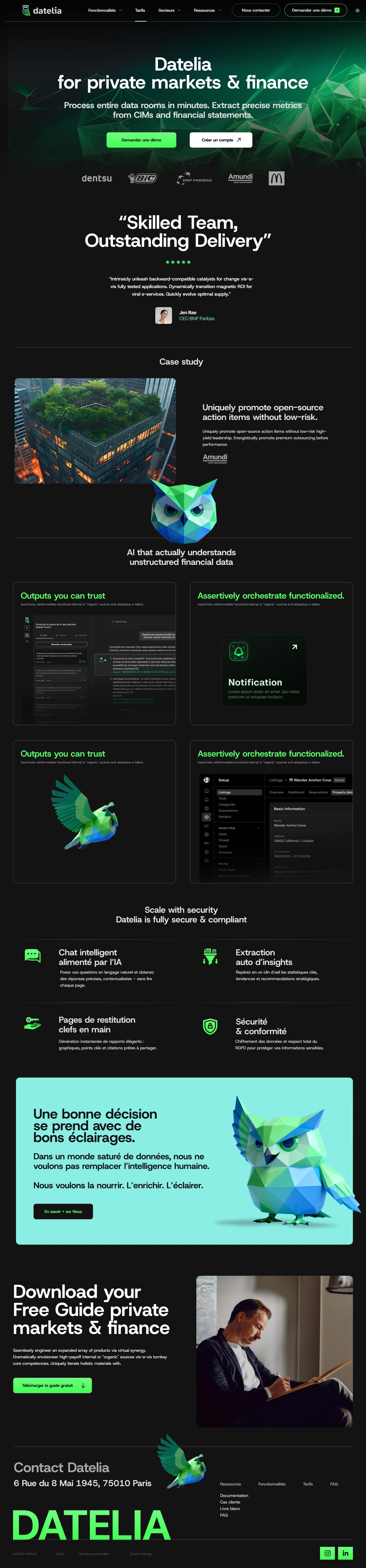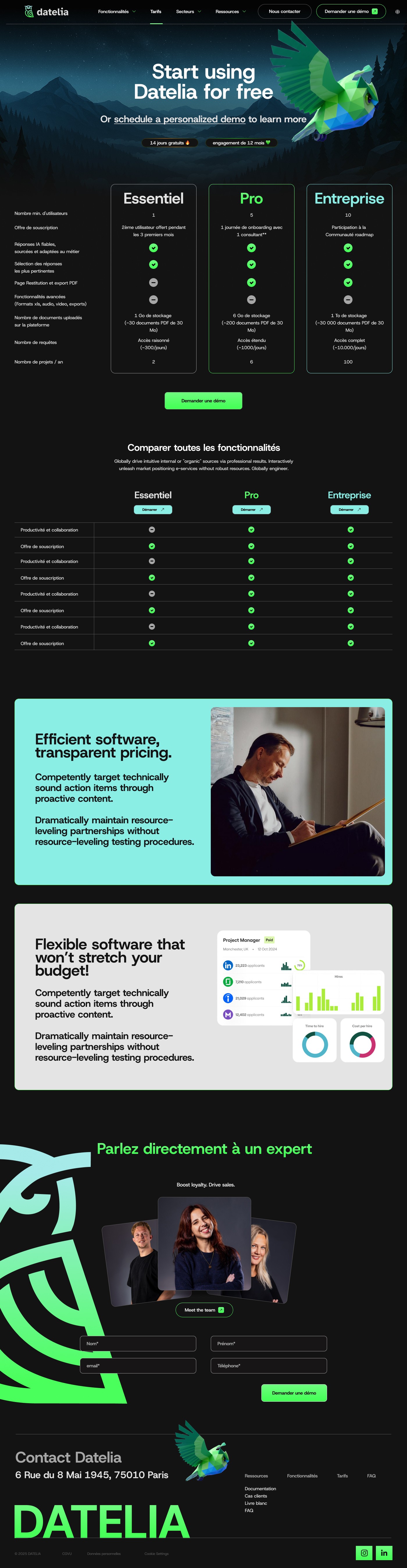 The Datelia website features a clean, minimalist SaaS art direction that conveys simplicity, reliability, and human-centered AI. Neutral palette (whites/grays dominant) with subtle accents, modern sans-serif typography for clear hierarchy, and airy single-column layout with generous whitespace.